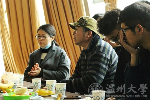 2015年3月23日下午,565net必赢客户端副教授陈伟老师应邀与同学们在565net必赢客户端视野空间交流室内开展了艺路导航第九期师生茶话会。陈伟老师所指导的寝室同学以及现授课的15美本2班的同学们都积极参与了此次活动。 尽管天公不作美,寒风中还夹着些许雨滴,但却并没有影响前来参加交流会的老师和同学们的心情,活动现场到处洋溢着欢声笑语,气氛火热。陈老师一到场就十分热情的与同学们寒暄交流。蒙蒙的天空,淡淡的思绪,一段故事,一份经历。看到如今正在始步于人生旅途中一脸朝气的同学们,陈老师便想起那时热血的自己。也许是气氛的渲染,又或是被同学们清澈的眼光所鼓动,老师开始说起过去的人以及曾经与艺术相关的事情。听着老师娓娓道来自己的往昔,同学们感触良多,倍受教育。而时代造成的不同经历和差别,又让同学们不禁对陈老师的经历事迹听得更加津津有味。老师说到:“无论理想多么远大,无论现实多么残酷,最重要的是用平和的心去面对”。对于大学生来说,我们现在也已经渐渐步入社会,接触各式各样的人。现实生活与环境有时候的确很难去改变,但是我们只要学会调整好自己的心态,学会吃苦,那么相信一切都会变得简单。正所谓忆苦思甜,平淡才是真。紧接着,当同学们谈到关于美术专业就业的问题,陈老师分析到学习要学会触类旁通,各类专业并没有那么明显的界限,老师鼓励我们利用课余时间多学习专业以外的东西,做到“多学多用,活学活用”。窗外的雨依旧淅淅沥沥的下着,但似乎是被老师与同学们的欢笑声所感染了一般,清冷的雨滴也染上了春的生机。良辰美景,赏心悦事,岁月虽然在脸上留下了沟壑,却品到了做人之点滴。再回首恍然如梦,才知道平平淡淡从从容容才是真。在茶水果香的氤氲中,本次艺路导航活动画上了圆满的句号。通讯:张彬瑶摄影:陈显楠