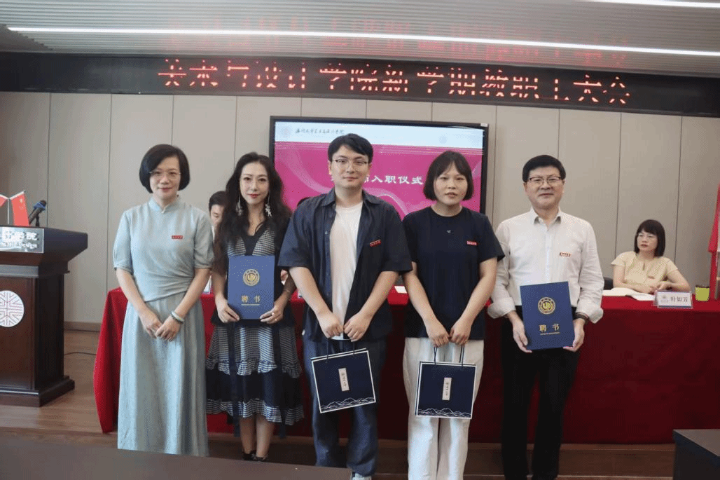 会议伊始,举行了新教师入职仪式,为学院注入了新鲜血液。江南老师和陈琼老师正式加入学院大家庭,学院特聘请金晨怡教授、刘青松书记作为导师,为新教师的成长提供指导与支持。院长谢子静为新教师及导师颁发聘书,现场掌声热烈,充分展现了学院对新成员的欢迎与期待。