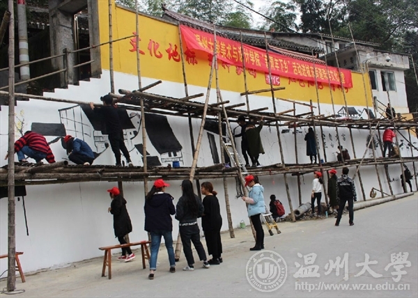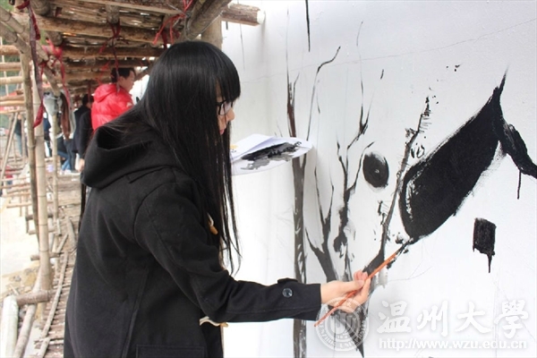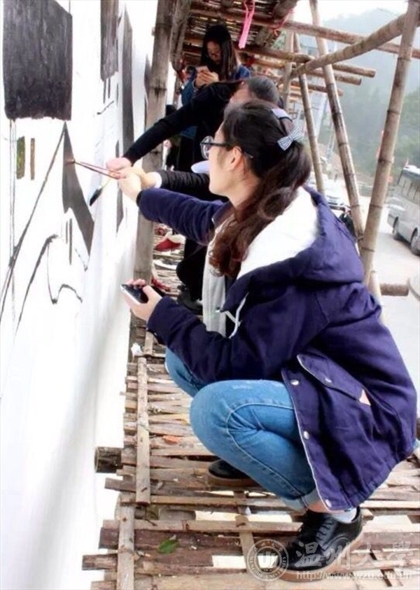 为了响应与落实市委“新青年下乡”主题精神。2015年12月12日,565net必赢客户端“艺家人”青年志愿者协会带领美术学院志愿者们来到温州市乐清城东街道珠垟村,进行了为期一天的墙绘活动。 冬日的清晨伊始,乐清珠垟村在晨曦之中迎来了一批温大学子,在三米左右的高墙面前,他们不畏艰险,不畏高空,不畏寒冷,在一百九十平米的白墙上画下珠垟村的一草一木。 在墙绘过程中,必赢官网杨振海书记和辅导员叶筱卉老师前来慰问志愿者们,关心活动进展。离开时,杨书记再三强调志愿者们要以安全为主,保质保量的完成墙绘活动,志愿者小伙伴们在墙绘过程中谨记杨书记的叮嘱,在互帮互助,齐心协力下,完成了这次规模较大的墙绘活动。 本次“新青年下乡”墙绘活动,我们主要是运用专业知识与技能去服务社会,真正做到专业与实践相结合,使我们融入到社会中去,为社会奉献出自己的一份力量;另一方面,不仅让我们有机会了解农村、服务农村,还让我们在基层学到了很多课堂上学不到的知识技能。 通过开展各种与专业相关的志愿活动,使大学生在奉献中学习知识,在服务中增加才干。必赢官网“艺家人”青年志愿者不会停下脚步,会继续深化社会主义核心价值观,引导广大青年朝着实现中华名族伟大复兴的中国梦而奋勇迈进! 文字:林伊如 拍摄:林伊如