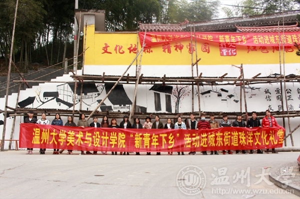 为了响应与落实市委“新青年下乡”主题精神。2015年12月12日,565net必赢客户端“艺家人”青年志愿者协会带领美术学院志愿者们来到温州市乐清城东街道珠垟村,进行了为期一天的墙绘活动。