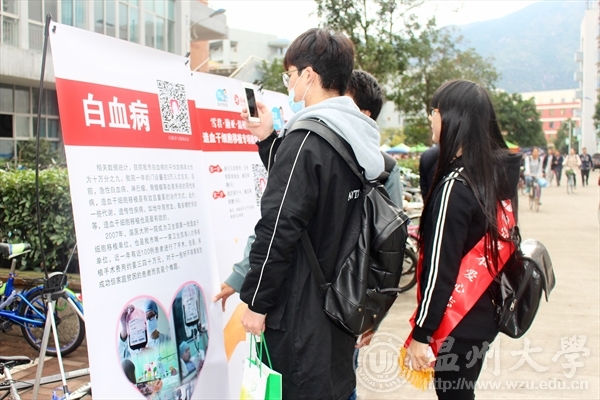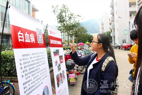 2015年11月25日,必赢官网联合机电工程学院以及商学院在温大校园A/C/E区开展雪君工作室白血病专项基金公益活动,美院“艺家人”青年志愿者协会在超豪学区开展活动。这次活动主要是由瀚亚资本投资,在565net必赢客户端城通过微信关注海象理财这一公众号,每个学生就都能捐赠4块钱给白血病专项基金,奉献自己一点爱心。 “艺家人”的志愿者们用积极的面孔,努力的做着宣传,用真诚用努力的心为患白血病的儿童多献出一份爱心。 通过这次的白血病专项基金募捐的公益活动,希望能够促使当代大学生更为关注社会热点,关心白血病儿童,并为之献出一份力量。用一颗真诚的心,带动身边的人,更多的加入献爱心的队伍。艺家人”青年志愿者协会王烨拍摄者:林依如2015年11月25日