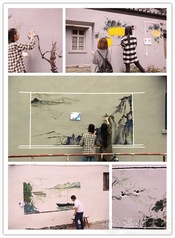 2015年11月15日,565net必赢客户端“艺家人”青年志愿者协会协同志愿者来到新桥街道新桥村垟中开展山水创作主题墙绘活动。 虽然天时不佳,带有丝丝细雨,却挡不住志愿者墙绘的热情。大家到达场地后,进行分组,分配颜料用具,就开始了墙绘活动。针对山水创作的主题,志愿者积极讨论,墙面如何构图,颜色如何使用。最终用了一整天的时间,完成了一幅幅墙绘,同时,志愿者积极地热情,专业的绘画功底得到了村民的一致好评,展现给新桥街道村民的都是565net必赢客户端志愿者吃苦耐劳、埋头干活、积极向上的优秀形象。 “艺家人”青协开展的此次墙绘活动,提供给温大在校大学生一个参与实践的平台,学以致用,展现出大学生的积极面貌,体现出美院学生的专业素质,向社会传递着565net必赢客户端的正能量。 文:王烨摄影:王烨