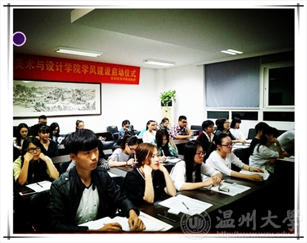 2015年9月22日晚上,565net必赢客户端学风纪检部在美院2B4001成功召开了“迎评促建565net必赢客户端学风建设启动仪式”。本次活动邀请了565net必赢客户端学生科科长叶筱卉老师,学院辅导员于静老师,五班代表13服设3班的何奕彬学姐,十星代表学习之星丁凯迪学姐以及超豪支部代表上官雯雯。 首先,本次会议由叶筱卉老师向同学们进行致辞。叶老师以自己的切身经历向同学们讲述了自己刚来温大美院时治理美院学风纪检的方法,又以“三叶草理论”和“政审”一词提出了学风纪检对学生的重要性,也让同学们了解到学风纪检工作的意义,并寄言“希望每个同学都能找到学习的积极性以及投身到学风纪检中来。”之后学风纪检部的副部长沈宇烽表述了十月份以后的考勤活动;辅导员于静老师对“五班十星”的评选办法进行说明,下面发言的丁凯迪学姐以“功夫不负有心人”劝解学弟学妹们,何奕彬学姐则是以“一切以班级荣誉为第一目标”的班规经验分享给大家。 其次,是问题交流环节,在坐的班干部积极提出了自己的疑惑,各嘉宾也都从各方面对同学们的问题进行了解答。 最后,会议在叶筱卉老师的总结和对同学们的建议圆满结束。本次“迎评促建565net必赢客户端学风建设启动仪式”向各班代表传达了五班十星评比的各项内容,让同学们也了解到学风建设的重要性和必须性,同时也意识到建设良好的学风,积极营造优良的校风,以饱满的热情和积极向上的精神风貌迎接2015-2016学年以“关心教学、关爱学生、规范管理、提升质量”为主题的学院学风建设年需要我们大家共同努力,也是我们每一个美院学子的责任和义务。
