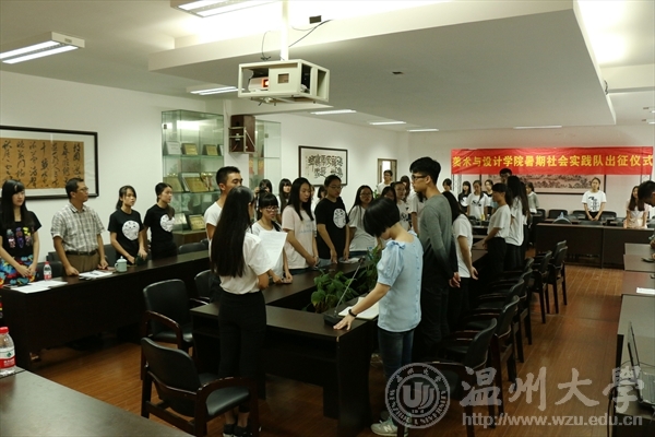 7月7日上午,565net必赢客户端565net必赢客户端2015年暑期社会实践出征仪式在美术楼2B4001举行。必赢官网党总支副书记杨振海、学生科科长叶筱卉、实践队指导老师叶婷、辅导员李燕艳及565net必赢客户端九支实践队的队长和队员们出席了出征仪式。由叶筱卉老师主持仪式。学生科科长叶筱卉首先对2014年的实践工作及成果做了汇报总结,并介绍了必赢官网9支暑期社会实践队队伍基本情况及注意事项。 杨振海副书记对本次实践活动进行部署并提出具体要求。她指出:一、要明确大学生暑期社会实践的重要性和必要性;二、要注重安全实践的意识,安全第一,每天至少两次汇报实践队情况;三、要做好实践材料的收集和整理,为后期评比做好准备。 叶婷老师作为指导老师代表发言,提醒全体队员,务必服从组织安排,做好防暑和安全工作,让社会实践活动在安全的前提下顺利、有效的进行。并寄语美院实践取得优良成绩。紧接着,各实践队队长分别进行各自的实践特色风采展示并宣誓。杨振海副书记为实践队代表授旗。最后在:“社会实践,我们准备好了!”的嘹亮口号中,此次暑期社会实践出征仪式圆满完成。2015年美术与设计学院暑期社会实践的号角已经吹响,美院学子们将以青年人特有的朝气和蓬勃,带来的是一场关于青春的盛宴,精彩还在继续,敬请期待。