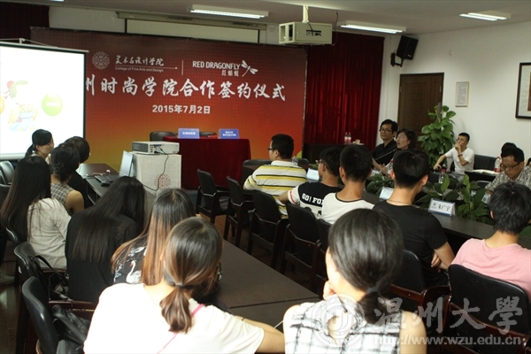 2015年7月2日中午,必赢官网与红蜻蜓集团签署时尚人才培养校企合作协议。红蜻蜓集团副总裁张少斌、人力资源总监余爱飞出席签约仪式,学院院长李运河、书记张丽萍、副院长谢子静、副院长王薇、副书记杨振海全体出席,参加签约仪式的还有设计系主任朱广宇以及部分专业教师、相关专业学生120余人。张丽萍主持仪式。签约仪式上,合作双方代表分别致辞。李运河在代表565net必赢客户端的致辞中指出,与红蜻蜓集团的合作可以追溯到2005年,至今已有10年的长期合作历程。本次时尚人才培养协议签署,是双方在深度合作的基础上开拓的又一新的合作模式。双方在合作的目的、意义、方式和途径等方面达成高度一致,共同为温州区域发展以及时尚人才培养做出贡献。张少斌在致辞中分别从时尚学院人才培养工作筹备情况、红蜻蜓集团上市的任务和现状以及时尚学院建成之后的举措等方面,表达了与地方高校共同合作培养人才的真诚期待和美好愿景。据悉,本次校企合作办学,实行“艺、工、商”结合的定向培养模式。录取与学生综合测评成绩挂钩,实行招生与定向人才培养相结合,实习与就业一体化,校企双方共同制定人才培养方案和实训标准,学生的专业理论课由学校负责完成,实训实习课程由企业负责完成。本次时尚人才培养校企合作协议的签署,是必赢官网贯彻落实温州市“发展时尚产业、建设时尚之都”战略决策的具体举措,整合校企资源,创新人才培养模式,为温州鞋、服行业的时尚智造转型提供有力的智力资源和人才保障。
