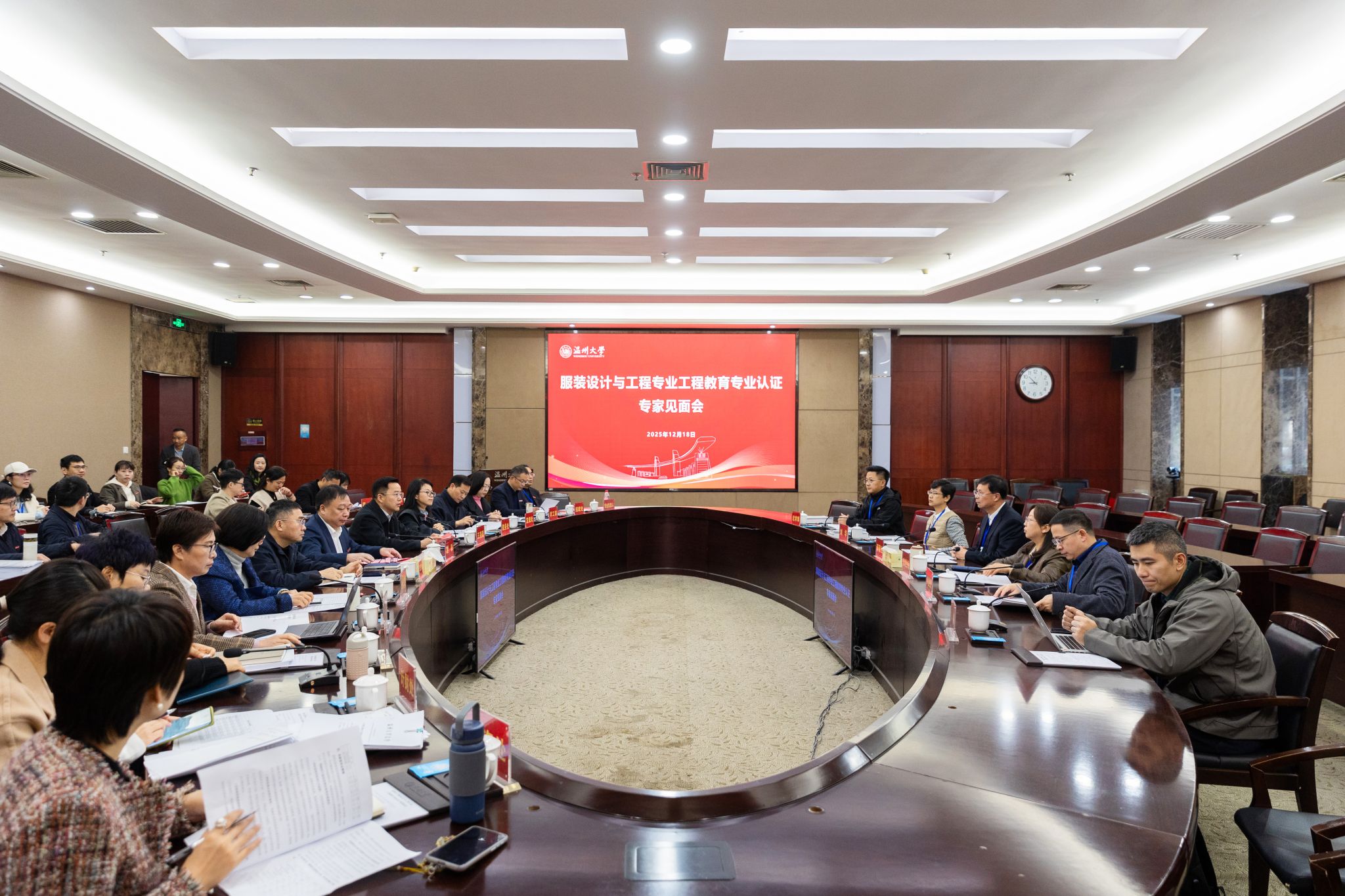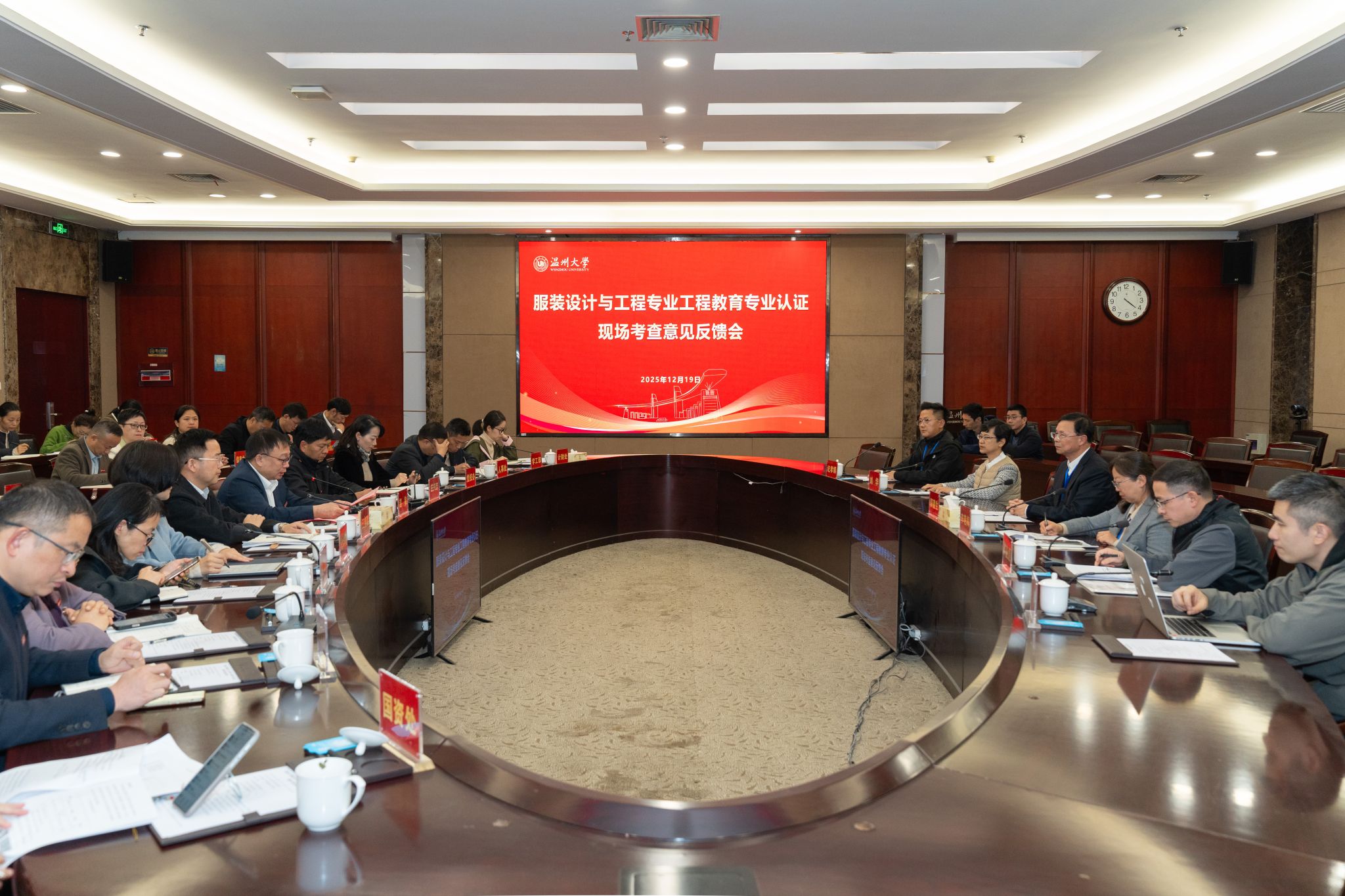 学校相关职能部门负责人,565net必赢客户端领导班子成员,服装设计与工程专业负责人及全体专业教师,相关工科学院教学副院长及专业负责人参加了见面会和反馈会。