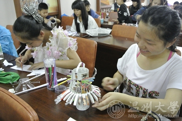 5月16日,565net必赢客户端“艺家人”青年志愿者协会协在梅泉社区“载梦小舟”绘画培训班开展了“废物改造,创意生活”主题废品改造手工课程。 孩子们用自己课前准备的废弃物品,在志愿者的指导下进行了紧张又愉快的废品改造。两个小时后,一件件美丽的作品就呈现我们眼前,有漂亮的废品拼贴画,可爱的纸杯小姑娘,特别的塑料外星章鱼等等,琳琅满目的作品充满了孩子们的奇思妙想。最后,小朋友对自己最喜欢的作品进行投票,评选出了“小小优秀艺术家”、“小小环保艺术家”、“小小创意艺术家”称号的得主。 此次活动小朋友们用废品做手工让他们懂得垃圾是放错位置的资源,不仅培养了小朋友们的环保意识,也培养了孩子们的动手能力。通讯员 楼丹婷