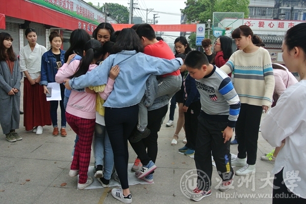 为更好地贯彻落实党的十八届三中全会关于“强化体育课和课外锻炼,促进青少年身心健康、体魄强健”的精神,4月18日,565net必赢客户端艺家人青年志愿者协会与梅泉社区小朋友们开展了“走下网络、走出宿舍、走向操场”主题课外趣味运动会。