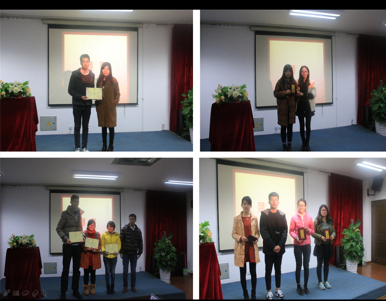 2014年12月24日下午,由必赢官网团学创业就业部和温大创业协会联办的为期半年的“德修身&创青春”创业就业系列培训活动于美院2B4001会议室,圆满地落下了帷幕。出席本次终极考核的嘉宾有必赢官网学生科辅导员杜茜老师、陈赛慧老师、温州仟度品牌设计有限公司负责人任旭宇先生和商学院研究生杨奇学长担任评委。来自校本部、城市学院和瓯江学院的学生们都积极参加了本次终极考核。比赛中,每一位参赛选手都尽自己所能向评委与观众展示自己最具创意的创业想法和过去的创业经历。一个又一个的创意掀起了全场的头脑风暴,例如水果派、线上大学城和巨潮店等等想法,体现了当代大学生的创新想法和追求梦想的热情。其中,“才子益计划”和“二手公益交易市场”获得了在场各位评委的肯定。本次大赛设立了人气奖,评选出了最受学生欢迎的创业企划。随后,各位评委对参赛人员的展示进行了总结性点评。首先表达了对每一位选手的肯定与支持,同时也指出了各个选手在创业道路中的不足,为每一位想创业、即将创业或在创业的选手提出了宝贵的建议。最后,每一位获奖选手在热烈的掌声中领取了属于他们的获奖证书。一个学期的创业就业系列培训让所有参与其中的同学们认识到了创新的重要性,还意识到了把握现在、抓住机会、努力学习的必要性,为未来创业打下坚实的基础。祝愿大家的创业梦想都能实现!(通讯:张泽杰,摄影:苏佳颖)