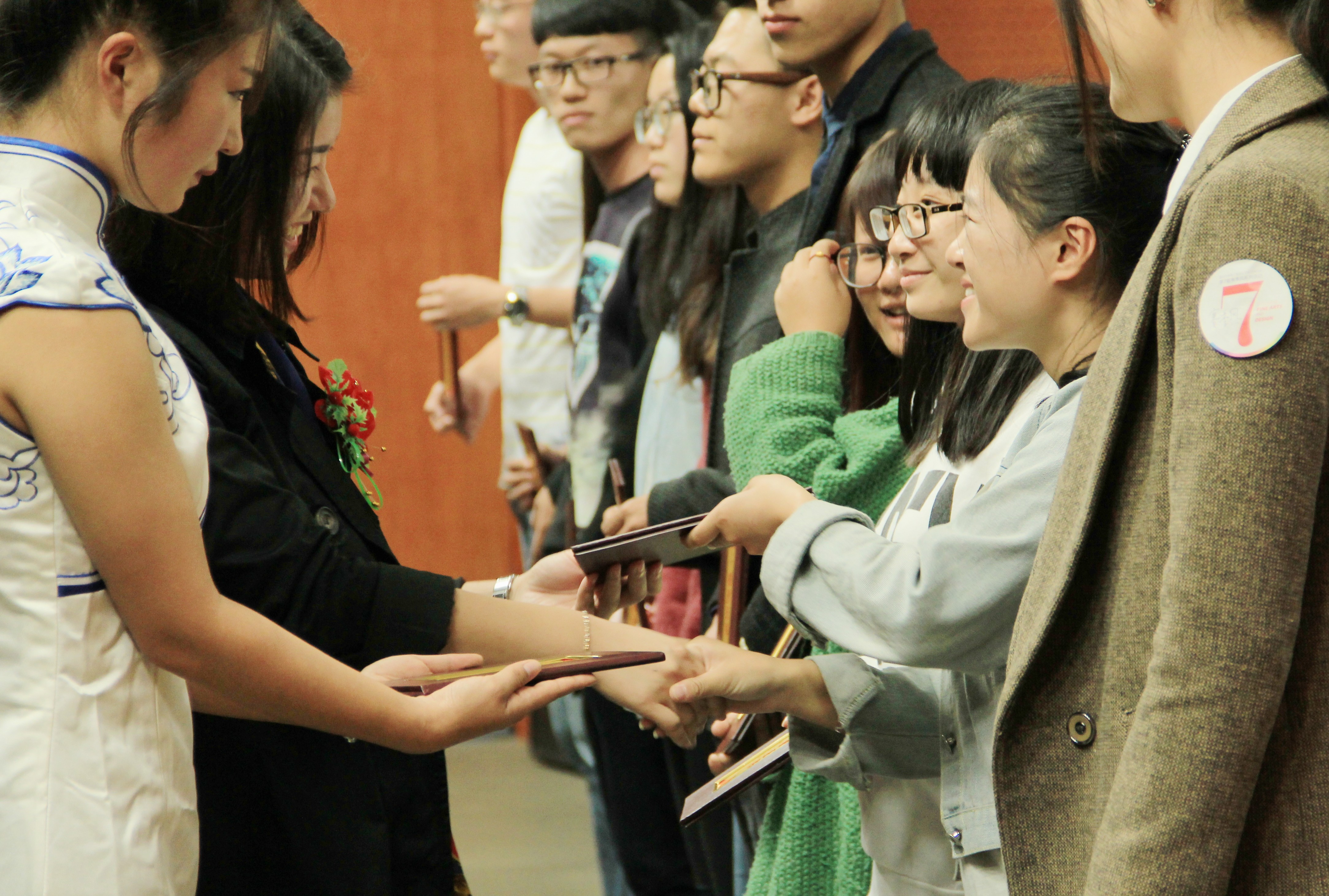 接着,郑彩莲书记宣读了“赛季风”先进个人名单、优秀指导老师名单、优秀创新创业团队名单。随后,伴随着欢快的音乐,获奖同学和指导老师走到台前,由潘玉驹部长、屠霁霞副书记、李运河院长、郑彩莲书记、蔡可群副书记为他们颁奖,并表示祝贺。那一张张自豪的笑脸诠释了拼搏与成功之间的联系,激励着台下同学积极进取,砥砺前行。