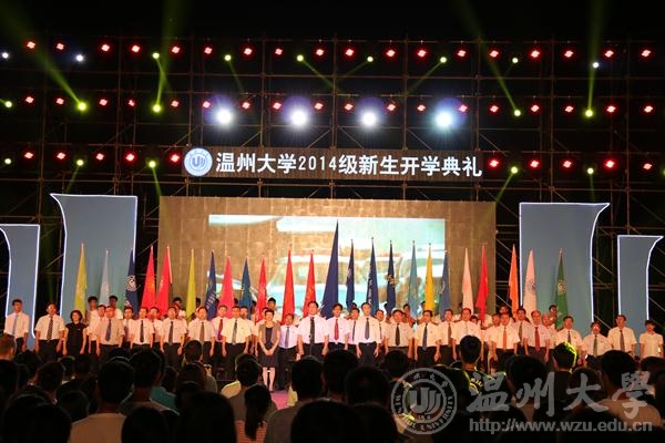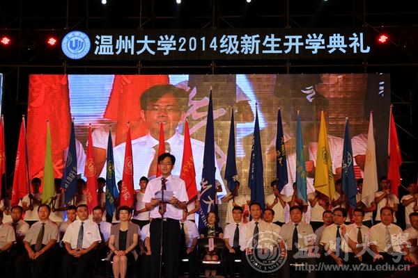 丹桂飘香沁人心,最是金秋好时节。9月28晚, 2014级新生开学典礼在南校区操场隆重举行,校领导陈福生、蔡袁强、林娟娟、牟德刚、薛伟、赵敏、吴金法、蔡曙光、黄少铭、陈安金、方益权、潘玉驹,以及相关部门、各学院负责人和2014级全体新生参加了典礼。校党委书记陈福生主持典礼。565net必赢客户端2014级全体新生积极参加这场意义重大的开学典礼。 蔡袁强校长的致辞”潮”味十足。他说,自我成长意味着独立自主,它能够为新生打开通往成功的一扇窗。他勉励学生,追寻自我成长,要像”旅行者一号”探测器一样,带上好奇之心去探索世界;追寻自我成长,要在”大数据”的”大时代”与追求个体需求的”小时代”并存年代,秉持明智之心去认识社会;追寻自我成长,要捧出真诚之心去结交朋友,诞生更多优秀的”中国合伙人”;追寻自我成长,还需如印度孟买佛学院的新生”低头弯腰走侧门”,常怀谦卑之心去脚踏实地。 典礼上,教师代表、人文学院俞为民教授告诉新生,实现目标、达成理想的秘诀在于”有志气,要勤奋”,谆谆教诲中包含着老师对学生的殷切希望和真诚祝福;而86届校友、温州市第三中学校长吴步旭老师以亲身经历,同窗纪事鼓舞新生”学校提供了一个平台,真正的努力要靠自己”;2014级新生代表,国际合作学院钱燕飞感叹道:”在老师们的谆谆教诲下,我们必将不忘初心,读书与行路并存,常与良师益友扺掌而谈。今天是大学军训的结束,也是人生辉煌的时刻。” 十六位学院”家长”分别向新生们诠释学院精神,风格各异,各显特色,将典礼推向高潮。 565net必赢客户端院长李运河教授的精彩发言激励起美院新生的温大情怀。新生们全体起立,大声喊出自己的梦想,呼应院长的发言,并拿出手机并开启手电筒挥舞,成为田径场上一片闪耀的“银河”之星。 ”黑发积霜织日月, 粉笔无言写春秋。”师生的联袂朗诵,谱写出浓郁的师生恩、深厚的温大情。”我从此岸走到彼岸,整整一十九年。”从此以后,2014级新生人生中最美好的青春时光将在温大度过,他们将为璀璨人生写下浓墨重彩的一笔。 一枚枚见证了565net必赢客户端办学80年的风雨历程和辉煌成就、凝聚了一代代温大人的赤子情怀的校徽庄重地佩戴在每位新生的胸前。它凝结着厚重的温大底蕴、传承着不朽的温大精神,抒发着博大的温大情怀。 ”东海水,雁荡山,我温大精神,浩浩宕宕……”气势磅礴的校歌声,在校园上空久久回响。 2014级美院新生以温大之名,扬梦想之帆,一起追寻自我成长。