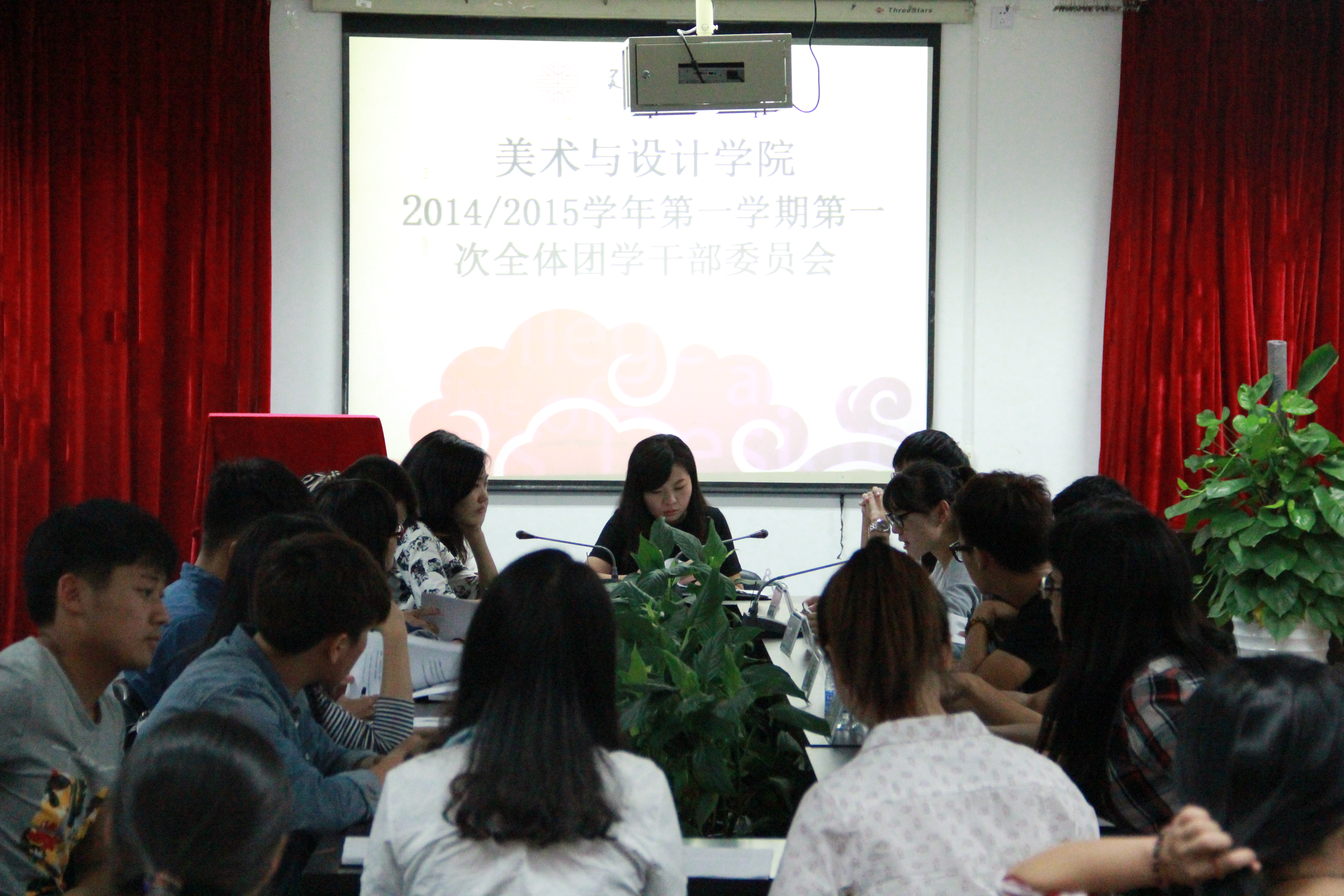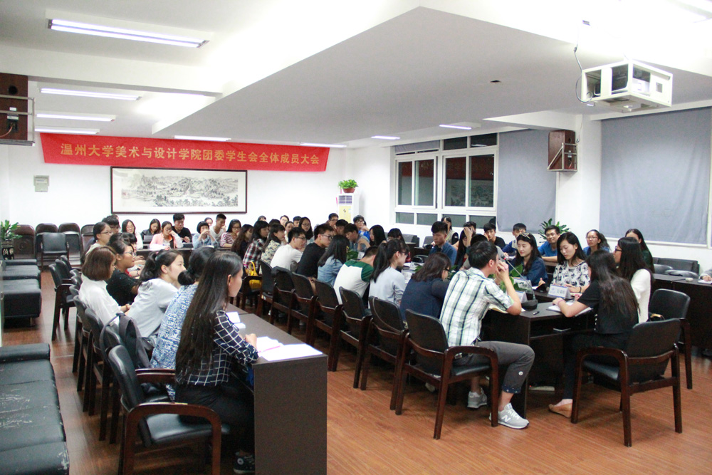 春华秋实,丹桂飘香。10月10日晚,565net必赢客户端团委学生会在2B4001召开了本学期第一次全委会,参加此次会议的有学生科辅导员杜茜老师、团委副书记金李斌、学生会主席吴荣婷、学生会副主席叶佳颖、冯瑜瑜及学生会全体成员。 首先,主席团成员分别就分管部门的工作职责和要求做了总体说明,对新晋干事加入团学大家庭表示了欢迎,希望大家都相互配合、共同进步。 杜茜老师让每一位团学干事都做自我介绍,让大家用一句来表达自己加入学生会的初衷。“锻炼自我、多学知识、广交良友、服务学院、更好成长这五个关键词,是我刚才从新晋37位干事充满朝气活力的表达中所听到的,希望你们能保持住这份激情和信念!”随后,她对学生会成员提出来几点期望:第一,要有明确的角色定位,要能够在学生中起先锋模范作用,能够全心全意为师生服务。第二,要提高自身的工作能力,包括决策能力、组织能力和创新能力等,同时要发挥自身的主动性与能动性,将热情和激情投入到工作中。第三,要有良好的心理素质,学会善于控制自己的情绪,“讲该讲的话,做该做的事情”,懂得换位思考。第四,要相互协作,共同推进团学工作。本学期团学以“勤学修德·艺路笃行”为主题,希望各部门积极开展活动,繁荣学院文化艺术氛围。 会议的第三项议程是新老生交流环节,现场气氛活跃。主席团和各部门部长都分享了自己的经验。团委副书记金李斌讲到,要多与老师和同学们交流思想,学会取长补短。学生会主席吴荣婷强调了学习的重要性,希望大家学会学习,懂得规划大学生活。新干事们也纷纷发表了自己的感想。 新一届的学生会已经整装待发,相信在大家的共同努力下,美院团学工作会迎来更好的发展!