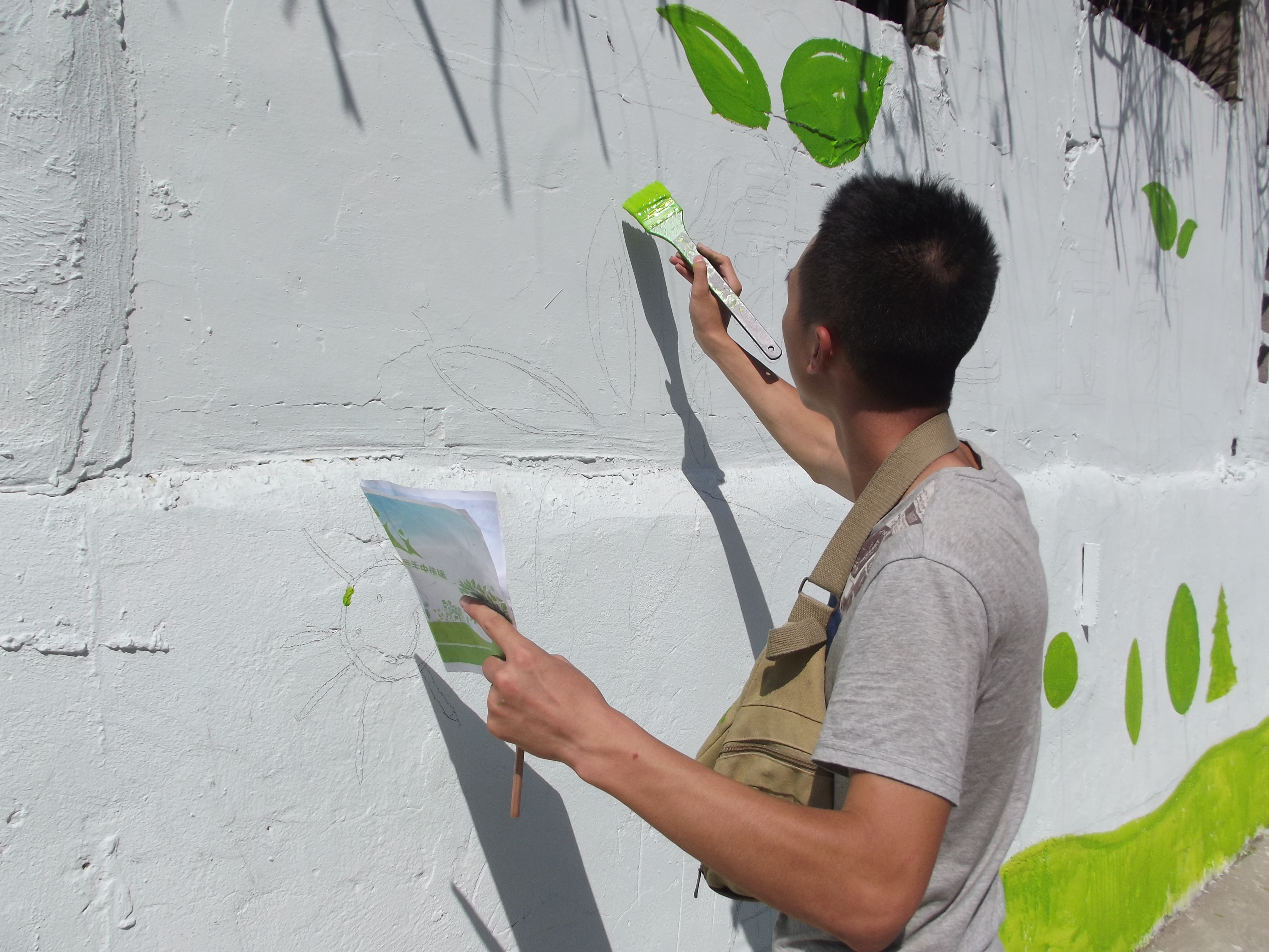 10月12日上午8点,565net必赢客户端“艺家人”青年志愿者协会与瓯海区茶山镇梅泉社区居委会合作举办了“创建文明城市”的墙绘活动。激情满怀的大学生志愿者们结合自身专业优势,以“创建文明城市”为主题,以绿色作为主色调,宣传低碳环保的生活理念。在志愿者的认真绘制下,白色空旷的墙壁被一幅幅美丽的图画所代替,引来附近居民一片赞叹。