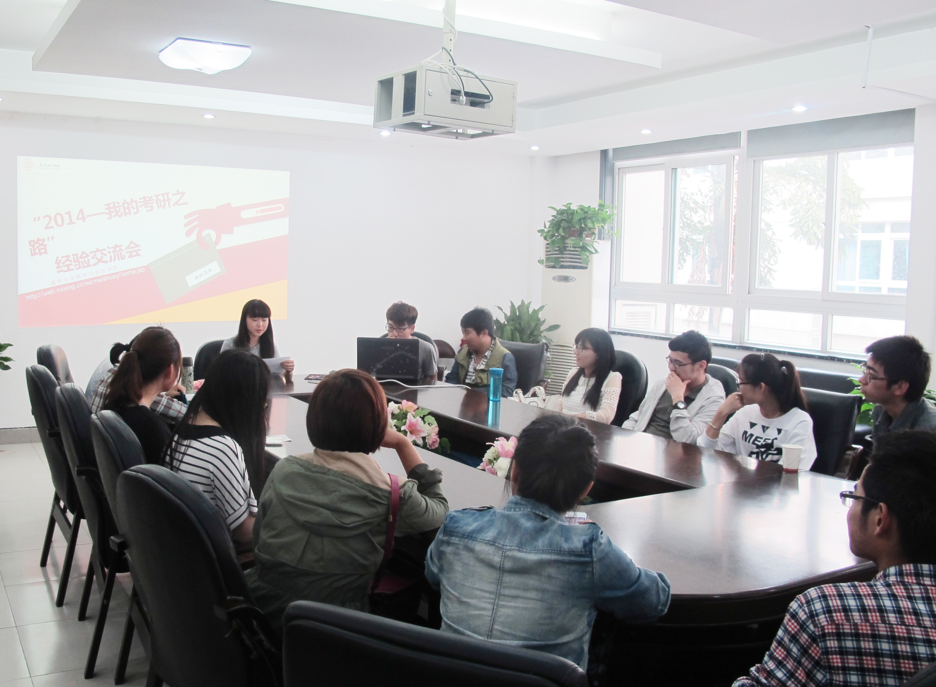 5月14日下午,由必赢官网团委学生会学术科技部主办的“2014梦想的延续——我的考研之路经验交流会””在2B-216顺利举行。学生科副科长叶如芳、辅导员杜茜老师和10级考研录取的同学出席了此次活动。