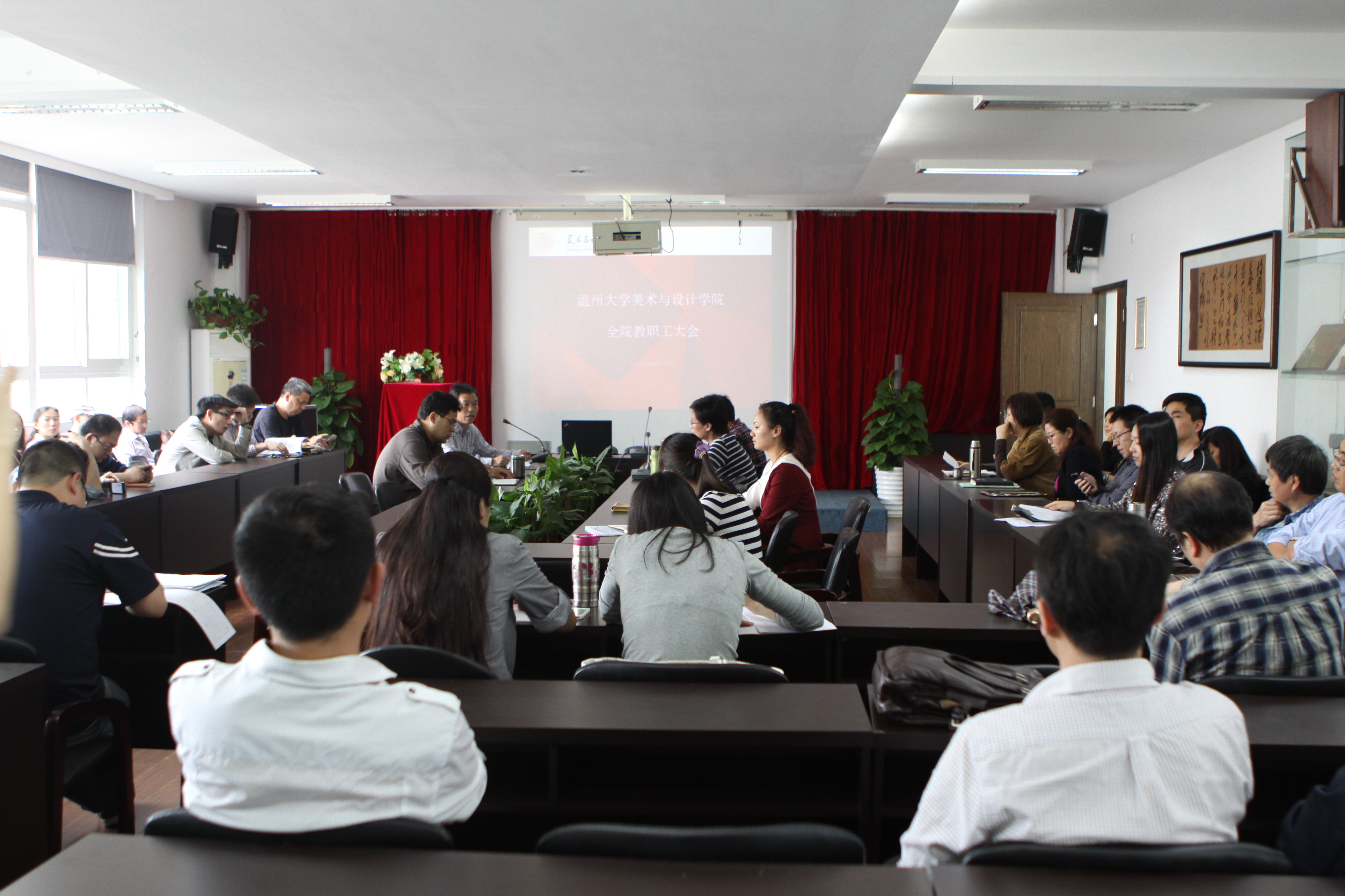 5月14日下午,必赢官网学期中全院教职工大会在2B4001多功能厅举行,院领导李运河、郑彩莲、蔡可群、杨振海及全体教职工出席。院党总支书记郑彩莲主持会议。 会上,蔡可群副院长首先就即将开展的毕业作品展、服装动态秀做了具体工作安排;对各专业人才培养方案修订做了说明,强调要加强对实验室的安全管理工作。杨振海副书记就往届毕业生就业调查、2014届毕业生就业工作及“大艺展”作品收集等工作做了说明与强调。 李运河院长对全院前阶段工作做了总结讲话。李院长首先对学校领导的人事及分工变动做了通报,随后就学院的教学、科研、对外交流等工作做了统一部署。他要求:一要时刻关注学校政策变动,保持敏感度;二要“走出去,引过来”,通过学院交流、教师参展、学院办展等多渠道、多方式加强艺术交流,营造美院艺术氛围;三要将教学、科研有机融合、紧密联系,保持追求艺术理想的同时不断提高服务地方能力;四要专业带头人要在不断凝练专业特色的同时带领团队做出更好成绩。 郑彩莲书记作了总结强调。她指出当前要强调“抓制度”、“强能力”、“促发展”,切实做好学院各项工作。毕业生作品展要提高作品质量;毕业生就业工作要脚踏实地认真做好每一环节,以保证本届毕业生的就业率和下一届的招生工作顺利进行。 会后,学院胡文超、王业宏两位老师就自己在台湾大同大学和美国康奈尔大学的访学经历与在场教师做了精彩分享。校图书馆王希老师也为必赢官网教师做了“提高资源利用、助力教学科研”的讲座。