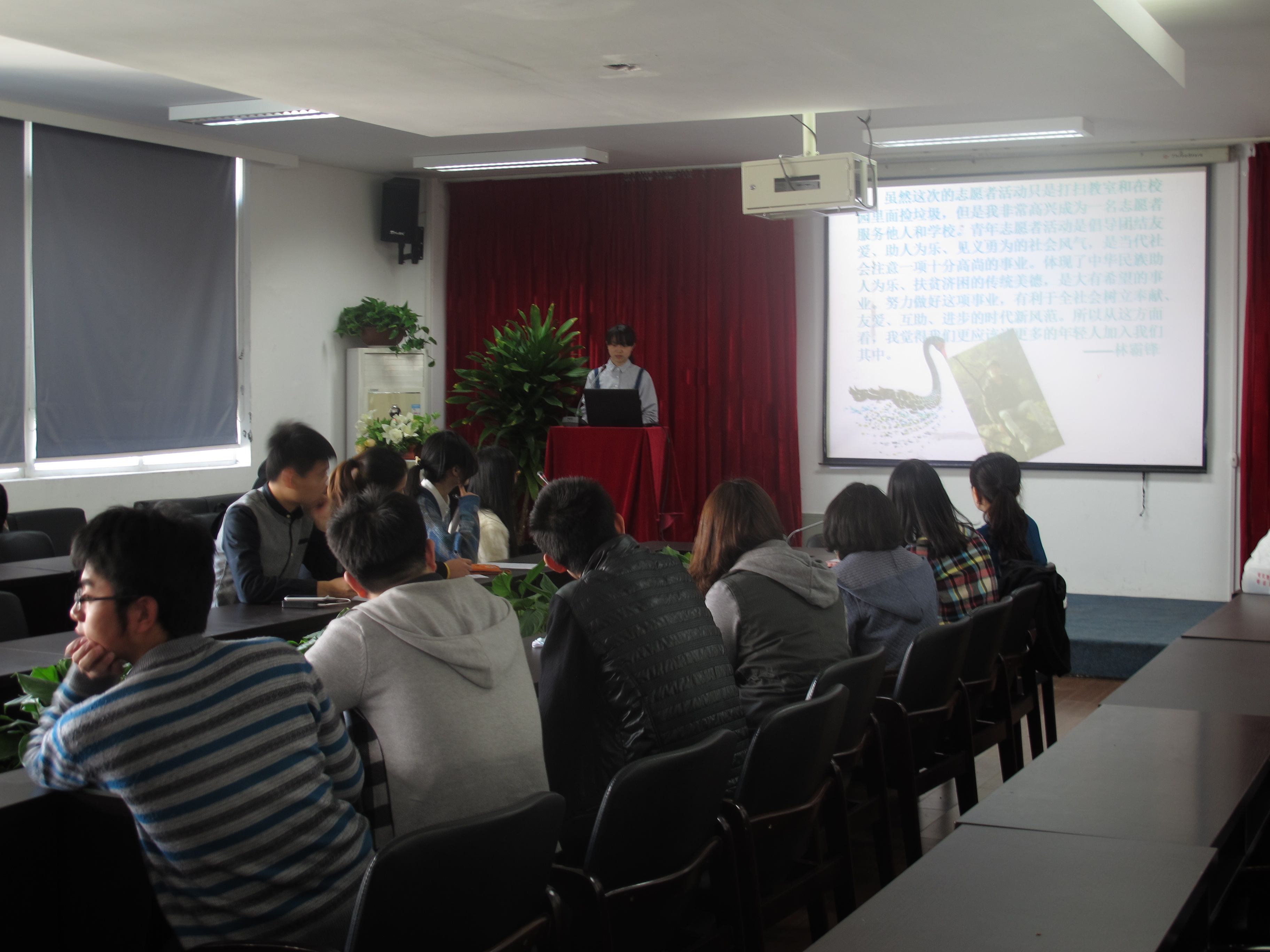 为传承和弘扬雷锋精神,展现当代大学生的文明风貌。3月22日下午,必赢官网“艺家人”青年志愿者协会在2B-4001开展了以雷锋月活动为主题的ppt展示评比,学院辅导员杜茜老师和青协副会长陈周红、冯瑜瑜担任评委参与了此次活动。 从3月15日,艺家人就开展了以“汇聚感动,传递温暖”为主题的雷锋月系列活动,参与活动的同学被分为8支小分队,每队有4-6名成员。同学们纷纷自发地以各种形式为社会文明贡献着自己的力量,有的队来到社区小学进行一对一的义务支教,有的队赶到茶山镇打扫地面上的垃圾,有的队走进教学楼清理墙面上的污迹,有的队来到住宿区整理胡乱摆放的自行车,有的队走向敬老院看望孤寡老人……分队成员将这些温暖的瞬间制作成PPT参与评比,与大家一同分享心得体会。 当PPT上出现小朋友画出的精美图案、老人嘴角露出笑容和学子为清洁的学习环境而感谢的画面时,志愿者说:“通过活动,让我们真切感受到了助人的快乐和喜悦,评选的结果已经不重要了,重要的是希望这些感动人心的照片通过传递后,能汇聚出社会的大爱,为和谐社会添砖加瓦!”
