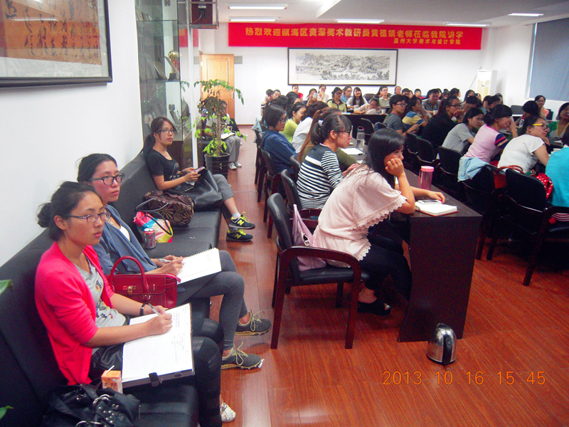 为提高在校美术师范专业学生的美术教育素养,565net必赢客户端组织开展了为期三周的“美术教育专题讲座”。10月16日下午三点半,温州市瓯海区资源美术教研员黄德靖老师在2B4001为同学们做了《勤奋 成就未来---与未来的美术老师共勉》专题讲座,主持此次讲座的是必赢官网研究生办公室主任胡建南老师。 黄老师首先与同学们分享了他自身的工作经验。他讲到只有先天潜质加后天勤奋才能超越自我。从事美术教育工作21年,他总结于一句话:痛,并快乐着。他随后谈到一个合格的美术教师应该具备的基本素养主要有四点:丰富的教育理论知识和扎实的美术专业技能; 良好的师德修养和端正的工作态度; 要有不断学习、努力进取的动力。 对于入职以后如何定位与发展,他提出了“两要”:要根据自身条件,走个性化发展之路;要抓住关键的前5年。他最后谈到了当下学生最关心的关于美术教师招考问题并以鹿城、瓯海、龙湾历年美术新教师招考情况为例着重深入地讲解了美术教师招考的应对技巧。在讲座的最后,同学们积极地与黄老师进行交流。此次讲座让在校师范专业的同学明晰深刻地懂得了如何做好21世纪美术教师。讲座取得了圆满的成功。