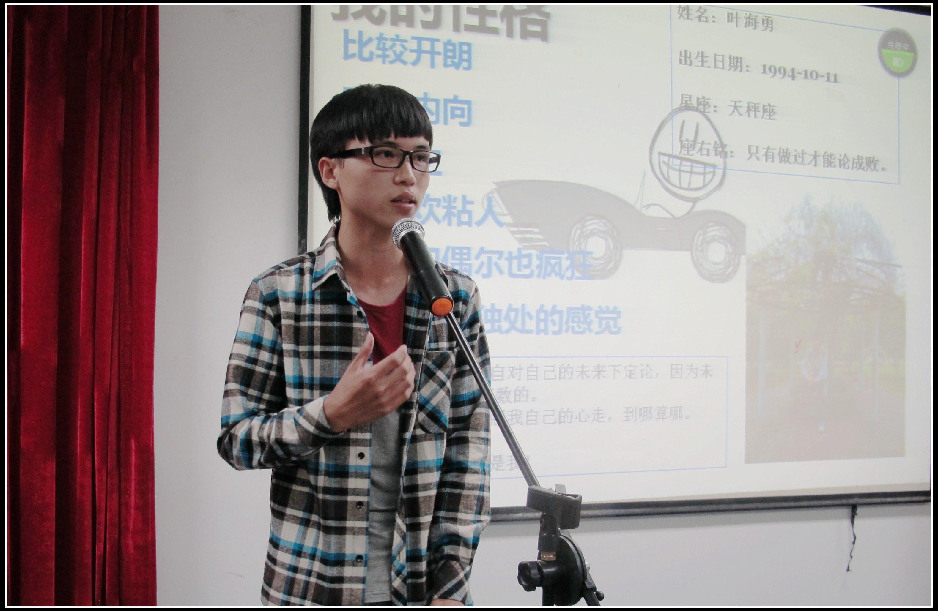 10月16日晚六点,565net必赢客户端2013级新生演讲赛决赛在2B4001顺利举行。校主持队队长谭博,校主持队优秀主持张清泉、刘志远,人文学院研究生贺书伟,565net必赢客户端研究生吕诚担任本场比赛评委。出席本场决赛的还有院学生会主席团成员及部分2013级新生。